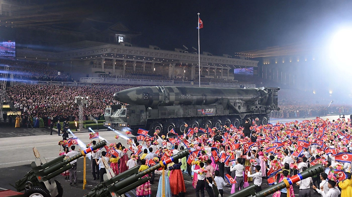 Bei der Militärparade zum "Tag des Sieges" hat Nordkorea laut einem Medienbericht im Beisein von Delegierten aus China und Russland atomwaffenfähige Raketen und neue Angriffsdrohnen gezeigt. Diese wurden vom Sicherheitsrat der Vereinten Nationen mit Unterstützung Chinas und Russlands verboten.