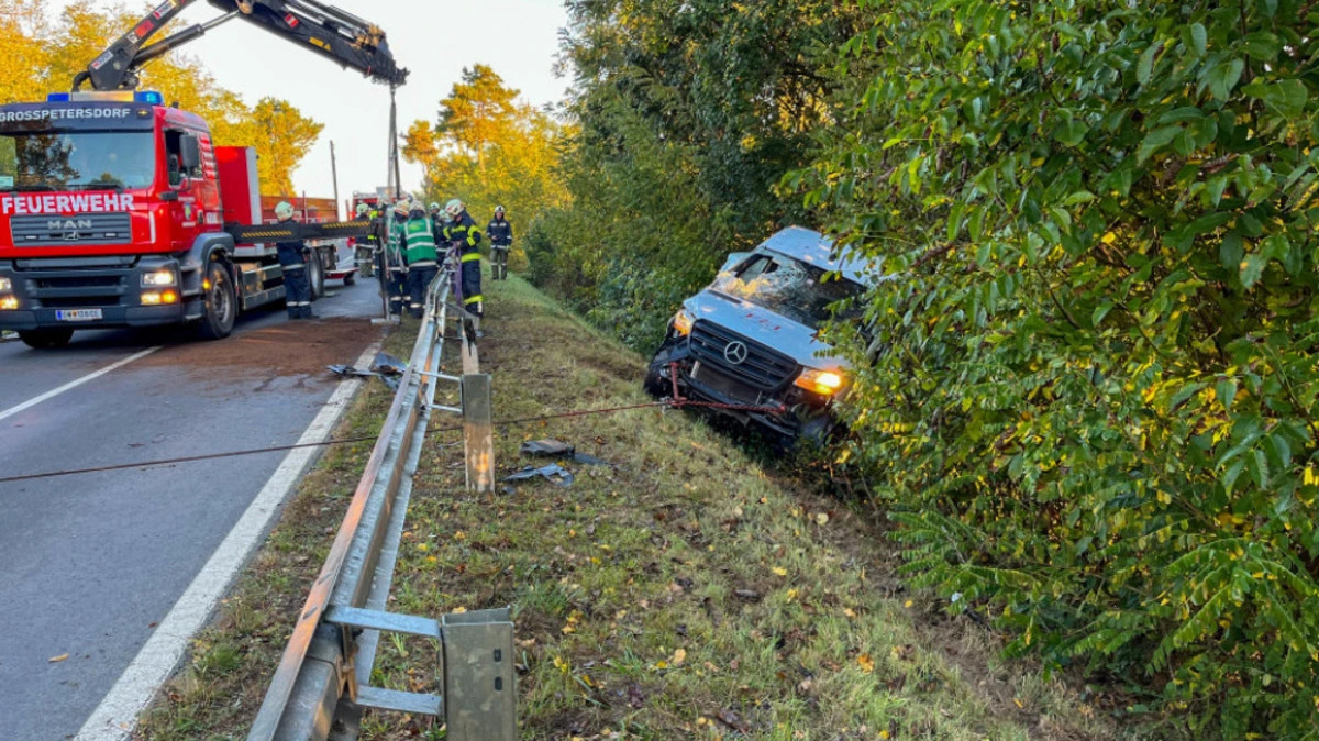 Ein Unfall mit einem Schlepperfahrzeug hat am Montag bei Hannersdorf (Bezirk Oberwart) sieben Verletzte gefordert. Der Kleintransporter war über die Leitschiene der L244 geschleudert worden und...