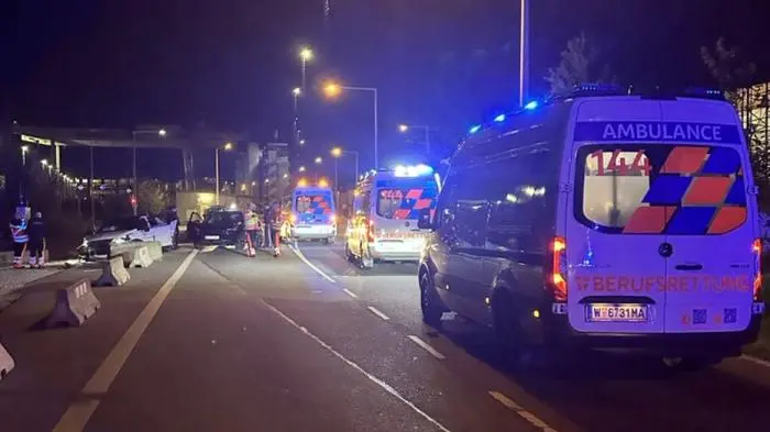 Eine Raserfahrt in Wien endete mit sechs verletzten Personen und einem Totalschaden am Mietauto