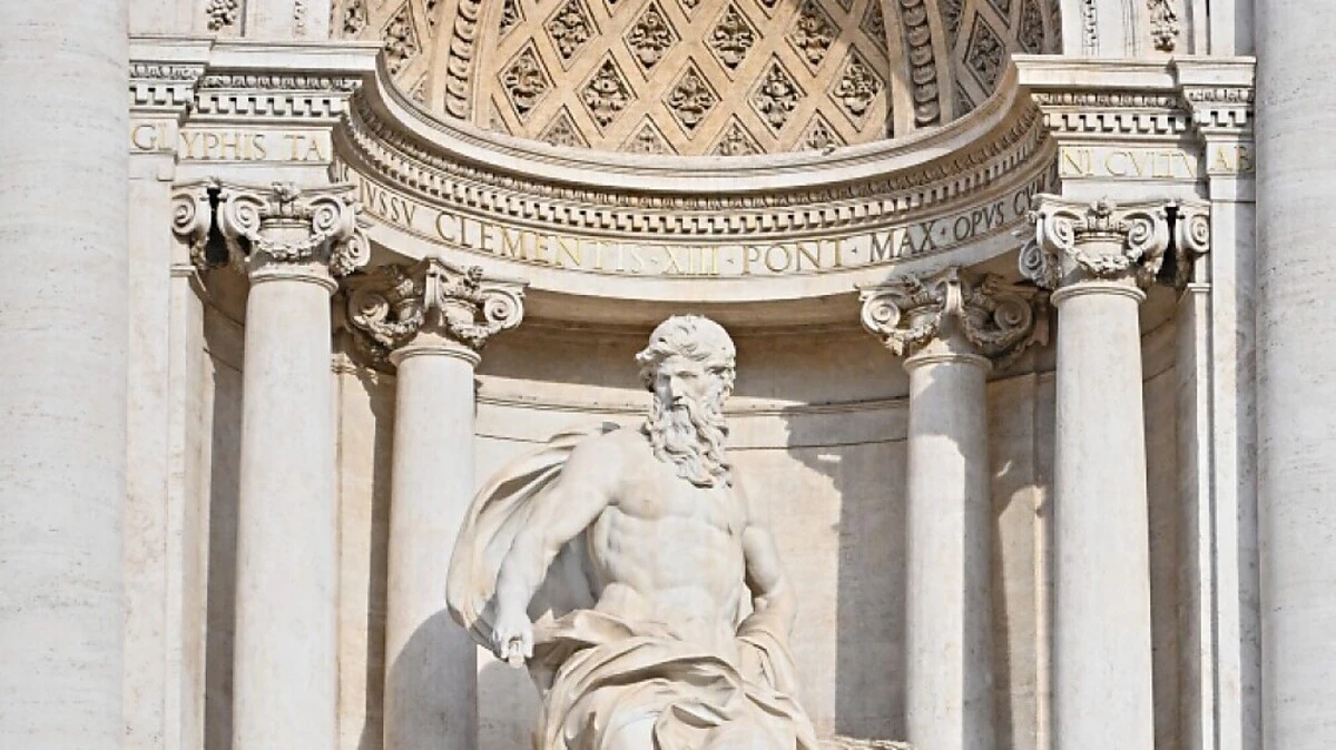 Einmal den Trevi-Brunnen mit seiner prunkvollen Palastfassade und der Felslandschaft aus Meeresgestalten aus unmittelbarer Nähe betrachten - das macht ein frisch aufgebauter Steg über dem wohl berühmtesten Brunnen der Welt möglich. Wegen Restaurierungsarbeiten ist die "Fontana di Trevi" in der italienischen Hauptstadt derzeit leergepumpt, der untere Bereich am Wasserbecken mit transparenten Wänden abgesperrt.
