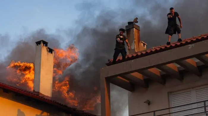 Auf Kreta zerstörten Flammen vier Häuser und eine Kirche. Dort ist der Brand inzwischen unter Kontrolle. In dem Athener Vorort Kryoneri verstärkte die Polizei ihre Präsenz, um die Häuser von wegen eines nahen Waldbrandes geflohenen Bewohnern vor möglichen Plünderungen zu schützen. "Der Wind war so heftig, wir waren von den Flammen umschlossen", sagte Petros Avramopoulos, ein Einwohner des Ortes.