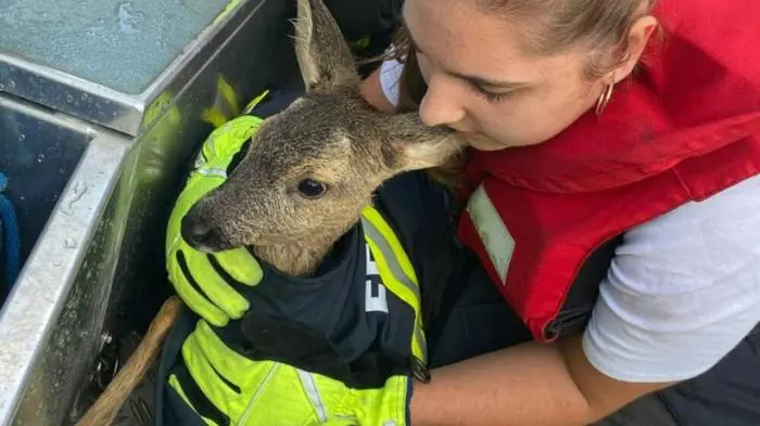 Rehkitz in Oberösterreich aus der Donau gerettet