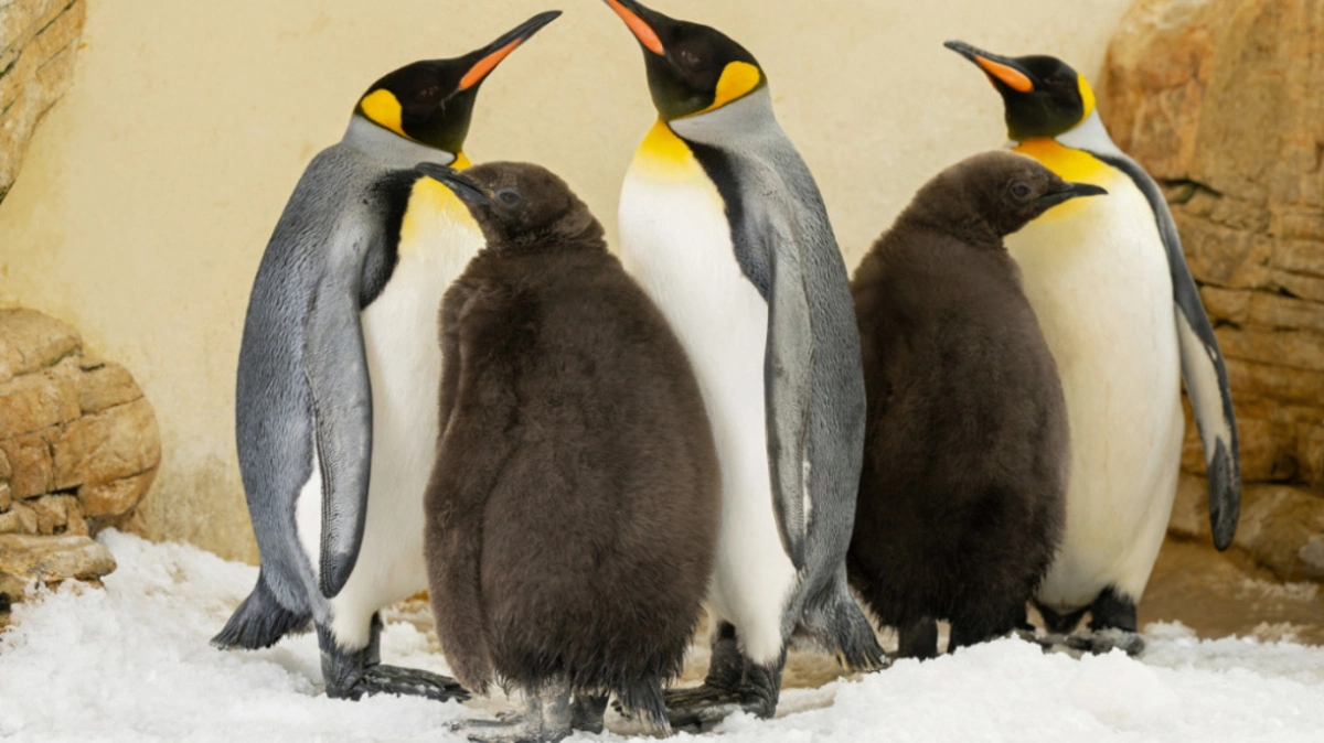 Im Wiener Tiergarten Schönbrunn ist bei gleich zwei Königspinguin-Paaren im Juli jeweils ein Jungtier geschlüpft. Mit ihrem braunen Dunenkleid sind die Küken leicht von ihren Eltern zu unterscheiden, sie gehen auch noch nicht baden. Denn ihr wasserabweisendes Gefieder bekommen die Jungvögel erst mit etwa zehn Monaten, berichtete der Zoo am Donnerstag über den "königlichen Neuzugang".
