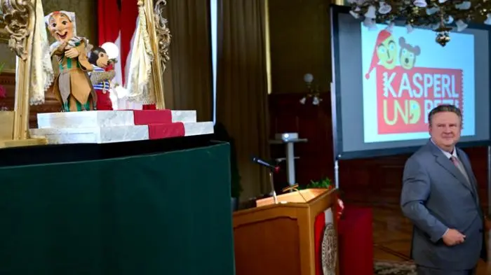 Im Wiener Rathaus sind am Donnerstag zwei der wohl prominentesten Bürger der Stadt gewürdigt worden: Der Kasperl und der Pezi. Das Dreamteam der heimischen Kinderunterhaltung ist vor 75 Jahren erstmals auf der Bühne des Puppentheaters in der Urania erschienen. Zum Jubiläum wurden die beiden von Bürgermeister Michael Ludwig (SPÖ) mit einem "herzlichen Krawuzikapuzi" begrüßt und mit einem "Goldenen Rathausmann" bedacht.