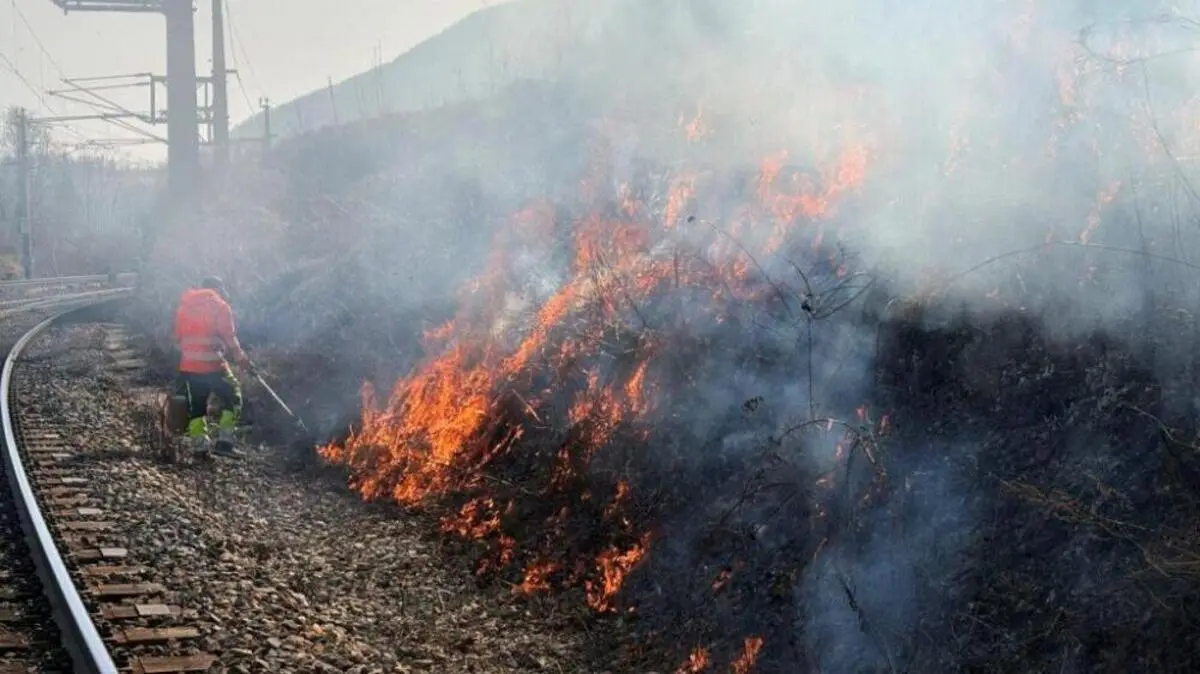 Über hundert Feuerwehrleute standen am Samstag entlang der Südbahn im Streckenabschnitt zwischen Gloggnitz, Eichberg und Aue bei Schottwien (Bezirk Neunkirchen) beim alljährlichen "Brandstreifenheizen" im Einsatz. Es handelt sich dabei um ein kontrolliertes Abbrennen trockener Wiesen und Böschungen im Umfeld der Bahnstrecke, um die Brandgefahr durch den Funkenflug der Zugbremsen zu vermindern. Das Brandstreifenheizen findet jedes Frühjahr in Zusammenarbeit mit den ÖBB statt.