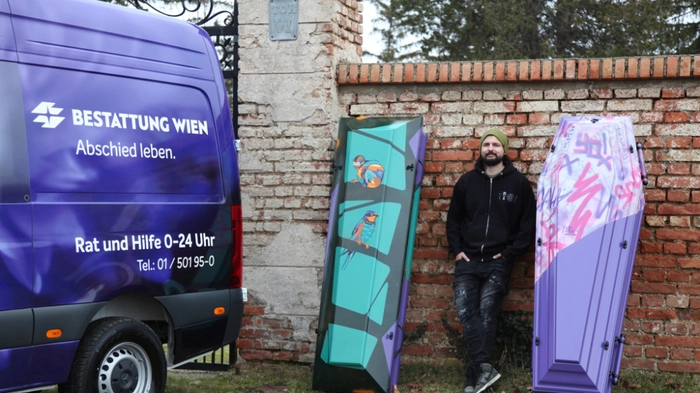 Dem den Wienerinnen und Wienern nachgesagten Wunsch, "a schene Leich" zu sein, hat die Bestattung Wien nun einen neuen Rahmen gegeben. Der international tätige Graffiti-Künstler Lucas Groeger alias "SKRIBL" hat zwei Designer-Särge gestaltet, welche die Bestattung in ihr Sortiment aufgenommen hat. In einer am Montag veröffentlichten Aussendung hieß es, dass damit das Angebot "um eine außergewöhnliche Form der individuellen Abschiednahme" erweitert worden sei.