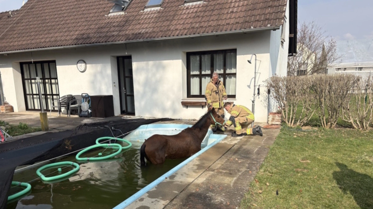 Pferd von Grazer Berufsfeuerwehr aus Pool geborgen