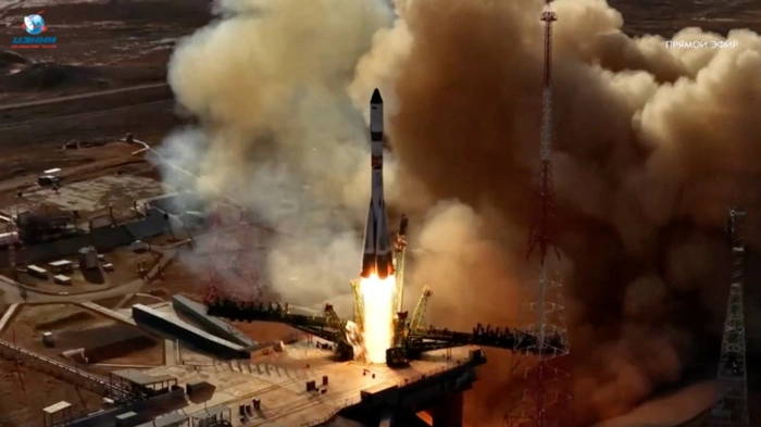 Rund vier Monate nach der Beschädigung einer Startrampe auf dem Weltraumbahnhof Baikonur in Kasachstan hat Russland wieder ein Raumschiff zur Internationalen Raumstation ISS geschickt. Eine Sojus-Rakete startete am Sonntag mit einem umbenannten Frachtraumschiff ins All, wie auf einem von der russischen Raumfahrtbehörde Roskosmos veröffentlichten Video zu sehen war. Das Raumschiff, das Treibstoff, Trinkwasser und Sauerstoff geladen hat, soll am Dienstag an der ISS andocken.