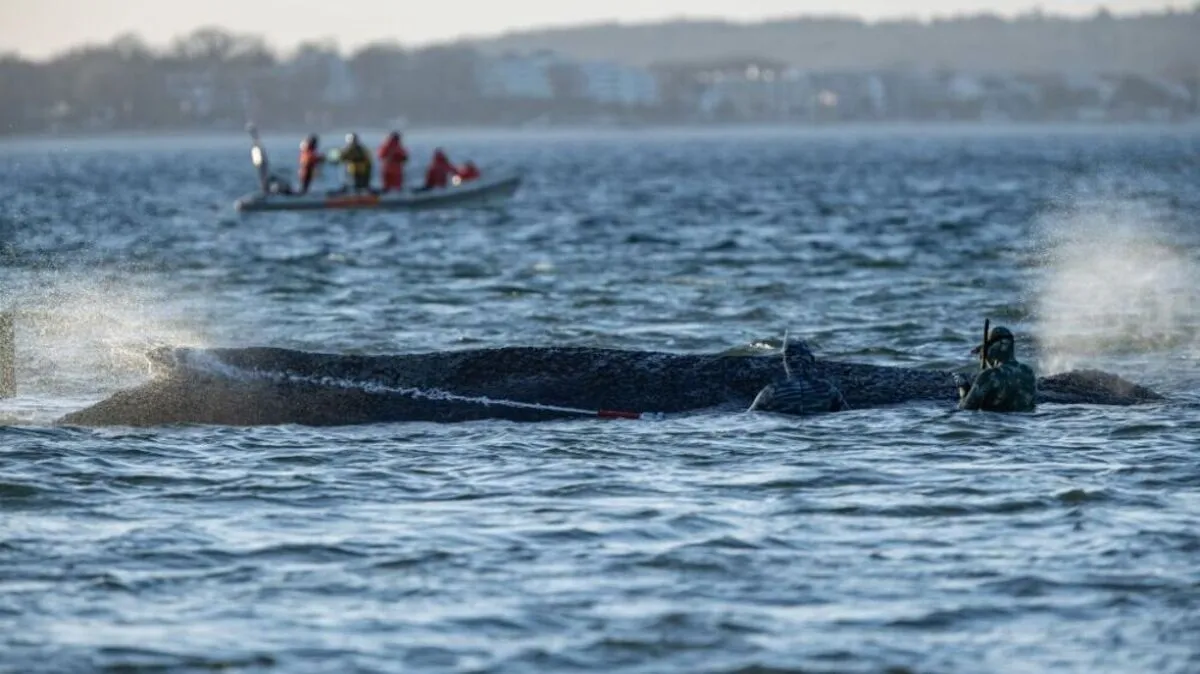 Nach tagelangen Bemühungen zahlreicher Helfer hat sich ein gestrandeter Buckelwal in der Nacht auf Freitag von einer Sandbank an der deutschen Ostseeküste durch eine per Bagger ausgegrabene Rinne freigeschwommen. Mehrere Stunden später wurde das Tier aber erneut vor Timmendorfer Strand gesichtet, bevor es sich wieder von der Küste entfernte. Naturschützer versuchten, den Wal mit Schlauchbooten in der Lübecker Bucht von einer Rückkehr ins flache Wasser abzuhalten.