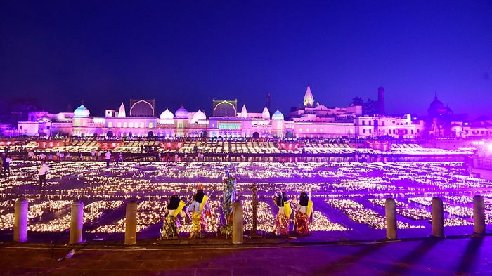 Am Vorabend des hinduistischen Lichterfests Diwali oder Deepavali hat die indische Stadt Ayodhya ein riesiges Lichtermeer inszeniert. Knapp 1,6 Millionen Öllämpchen wurden entzündet - ein Weltrekord, wie lokale Medien am Montag berichteten. Indiens Premierminister Narendra Modi und der Regierungschef des Bundesstaates Uttar Pradesh, Yogi Adityanath, hielten auf Bildern der örtlichen Nachrichtenagentur eine entsprechende mutmaßliche Bestätigung des Guinness-Buchs der Rekorde.