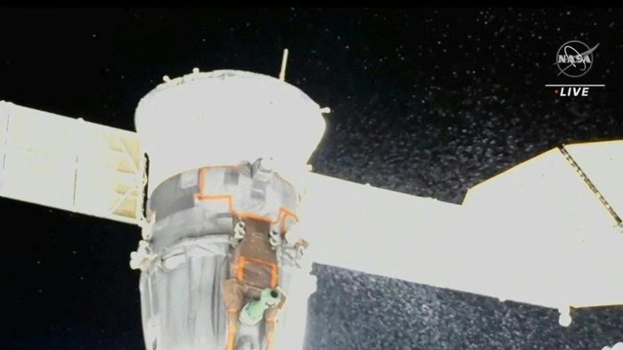 Raumfahrtspezialisten haben möglicherweise das Leck an der Außenhaut einer an die Internationale Raumstation ISS angedockten russischen Sojus-Kapsel entdeckt. Das teilte die russische Raumfahrtbehörde Roskosmos am Montag in Moskau mit. Auf dem Bildmaterial aus dem Weltraum sei die Beschädigung wahrscheinlich lokalisiert worden. "Spezialisten prüfen die eingegangenen Daten weiter", hieß es. Die Temperatur in dem Raumschiff Sojus-MS22 sinke, sei aber im Bereich der Norm.