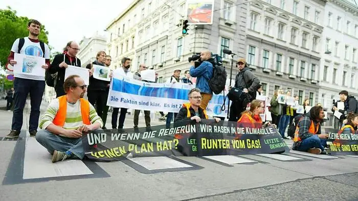 Aktivistinnen und Aktivisten der "Letzten Generation" haben Dienstagfrüh ihre insgesamt dritte Aktionswelle in Wien gestartet. Ab 8.00 Uhr klebten sich mehrere Mitglieder am äußeren Währinger Gürtel an der Fahrbahn fest. Mehrere Forschende unterstützten den Protest, die Blockade sei "Sinnbild für den Stillstand in der Regierung bei der Klimapolitik", hieß es an Ort und Stelle zur APA. Am Opernring verlangsamten zudem auf der Fahrbahn marschierende Umweltschützer den Verkehr.