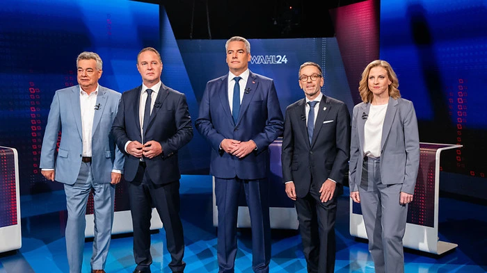 Die Unterschiede in ihren Positionen haben die Spitzenkandidaten der Parlamentsparteien bei der letzten "Elefantenrunde" vor der Nationalratswahl am Donnerstagabend im ORF hervorgestrichen. Größtenteils sachlich wurden die Themen Wirtschaft, Integration und Klima abgearbeitet - mit zunehmender Zeit wurde die Diskussion dann hitziger. Am emotionalsten wurde es bei der Neutralität, wo man einander teils "Heuchelei" vorwarf. Auch in Sachen Koalition wurde man deutlich.