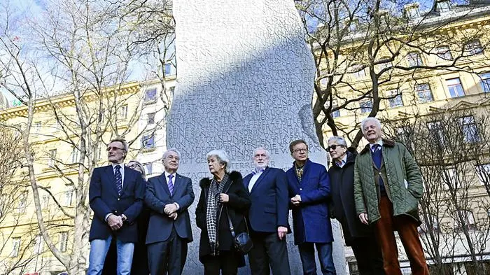 Ähnliche Appelle kamen auch von den anderen Teilnehmern der Pressekonferenz. Zuvor hatten sie sich vor dem Denkmal gegen Krieg und Faschismus von Alfred Hrdlicka am Wiener Albertinaplatz für ein Foto aufgestellt.