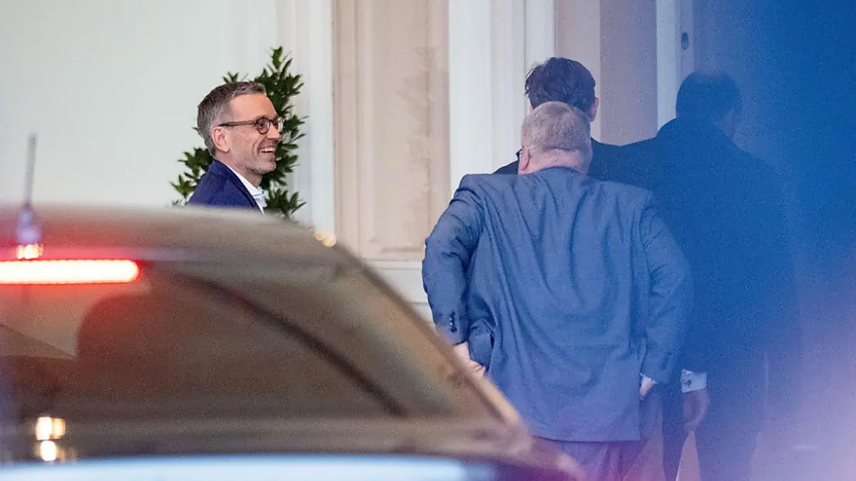 Kurz nachdem der blaue Parteichef gegen 18 Uhr die Hofburg verlassen hatte, traf auch Stocker dort ein. Bevor er die Präsidentschaftskanzlei betrat, stellte sich der ÖVP-Obmann kurz den zahlreichen Medienvertretern. Einmal mehr betonte er das gestern vorgelegte "Grundsatzpapier", mit unter anderem den Punkten Rechtsstaat und EU, wo es noch Diskussionsbedarf mit der FPÖ gebe, von dem er dem Bundespräsidenten berichten wollte. Rund eine Stunde später verließ er die Hofburg wortlos.
