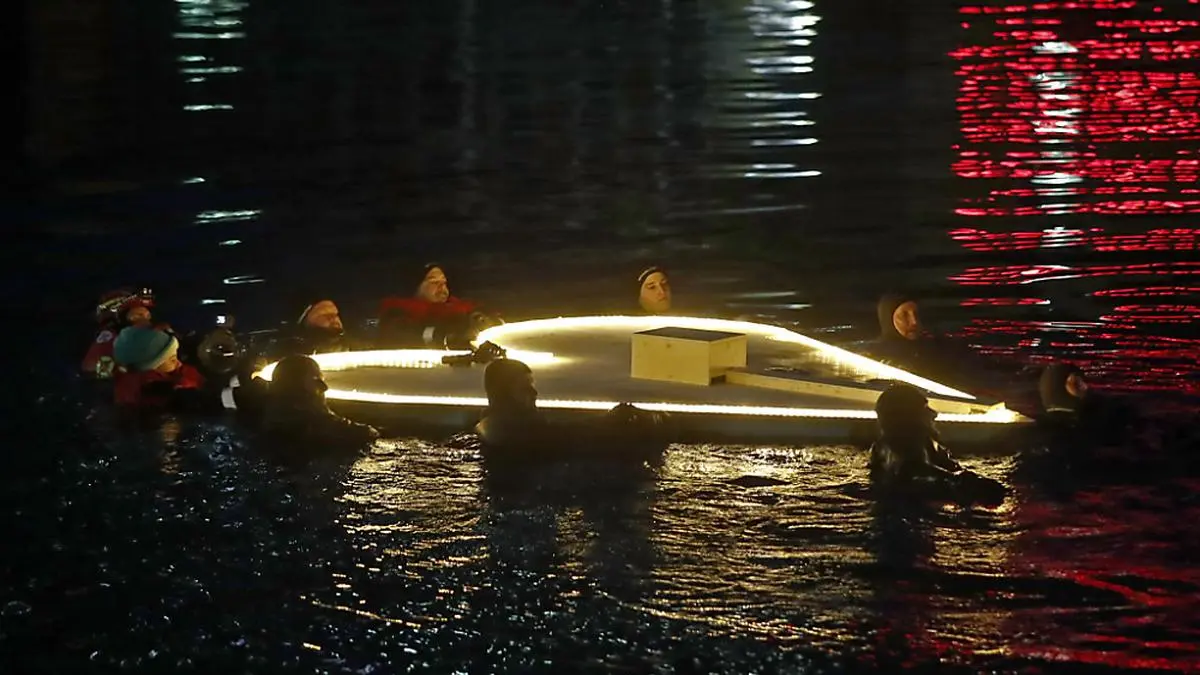 Mehrere 100 Menschen hatten sich zum Abschluss der Trauerwoche unter dem Motto "Ein Herz, eine Stadt. Villach hält zusammen" am Ufer der Drau und auf der Draubrücke eingefunden. Das Glockengeläut pünktlich um 18.00 Uhr, zum Beginn der Abschlussveranstaltung, hüllte die Menschenmenge in betretenes Schweigen. Zehn Taucher von Feuerwehr und Wasserrettung begleiteten ein Herz die Drau hinab und unter der Brücke durch, an deren Rand der 14-jährige Villacher am 15. Februar starb.