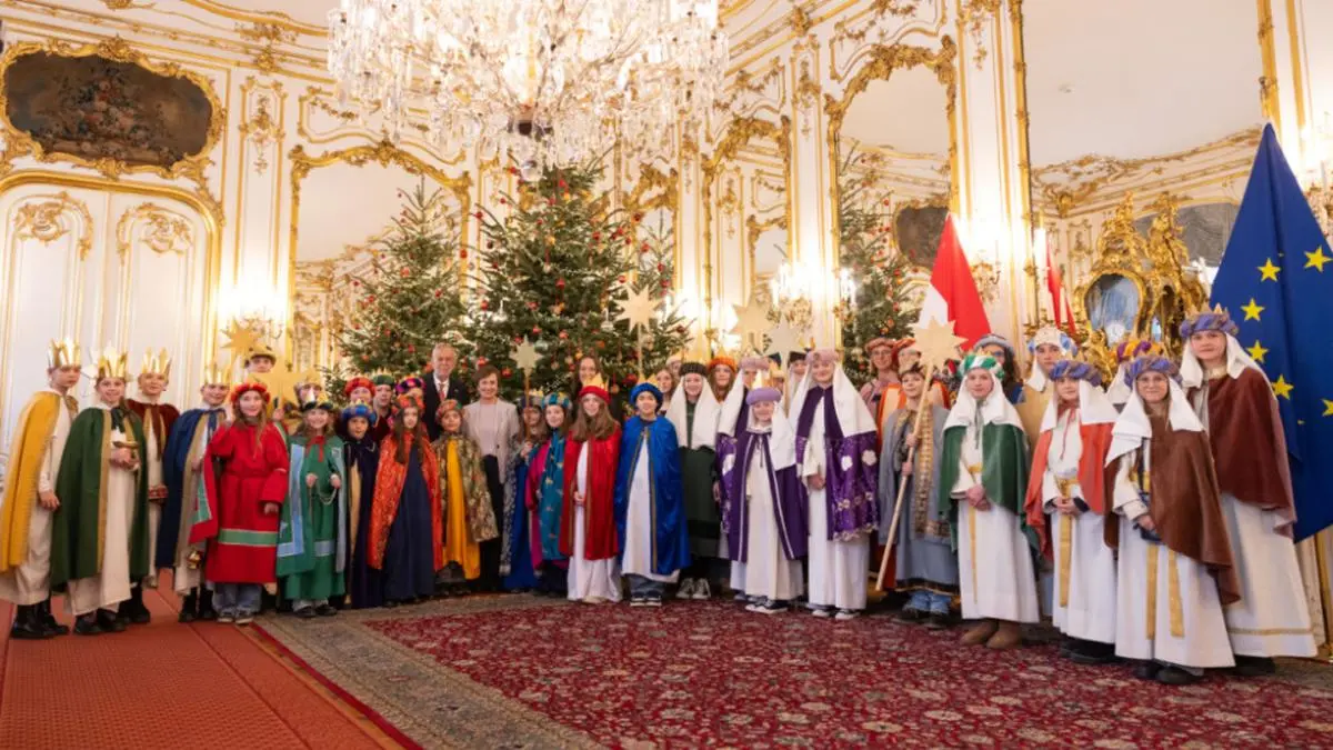 Nicht nur drei sondern, gleich ein paar dutzend "Heilige drei Könige" haben am Freitag Bundespräsident Alexander Van der Bellen und seiner Frau Doris Schmidauer Segensgrüße überbracht. Die Delegation umfasste Sternsinger aus dem ganzen Land, von Unterwart im Burgenland bis Weiler in Vorarlberg. Auch eine Gastgruppe aus Südtirol trat die Reise in die Präsidentschaftskanzlei an.