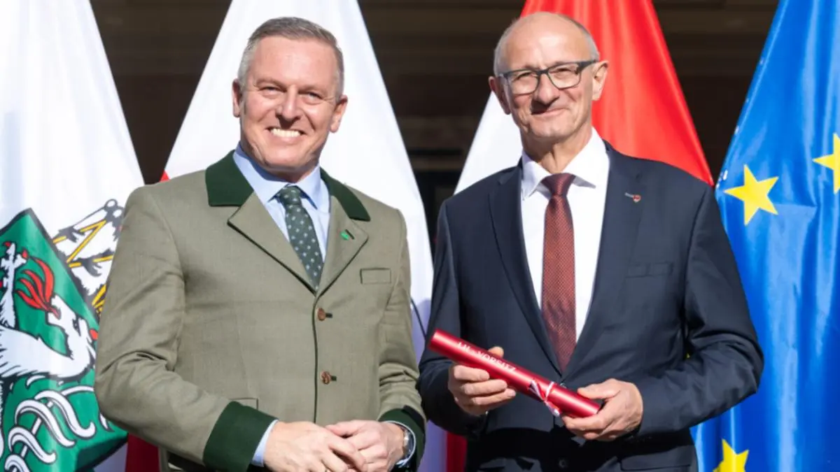 Schließlich folgte der eigentliche Festakt, in dem Kunasek das obligatorische "LH-Staffelholz" an Mattle weitergab. Als Geschenk für "Nachfolger" Mattle hatte der steirische Landeshauptmann übrigens einen "Weinkühler samt Inhalt" mit im Gepäck. Und letztlich machen sich auch die beiden - nach einem Arbeitsgespräch im Büro Mattles - auf den Weg Richtung Bergisel.