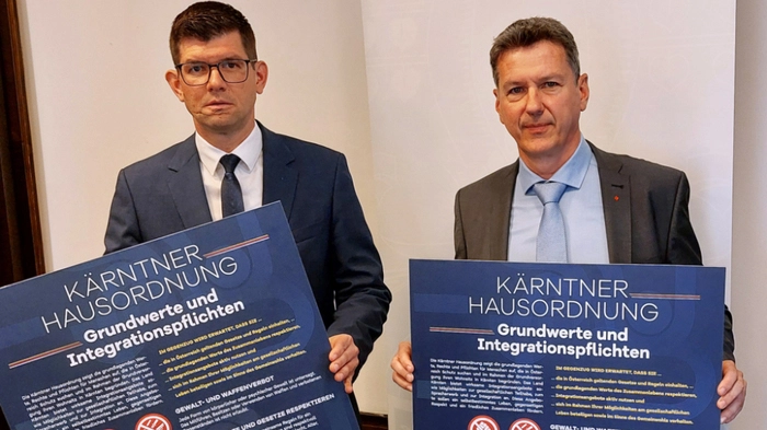 Die Kärntner Regierungskoalition aus SPÖ und ÖVP hat am Dienstag ihre angekündigte "Hausordnung" für Asylwerber beziehungsweise Personen in der Grundversorgung präsentiert. Neben einem Verbot von Gewalt und Regeln für ein respektvolles Zusammenleben sollen sich die Personen per Unterschrift verpflichten, Deutsch zu lernen und gemeinnützige Arbeit zu leisten, sagten SPÖ-Chef und Landesrat Daniel Fellner und ÖVP-Landeshauptmannstellvertreter Martin Gruber vor Journalisten.