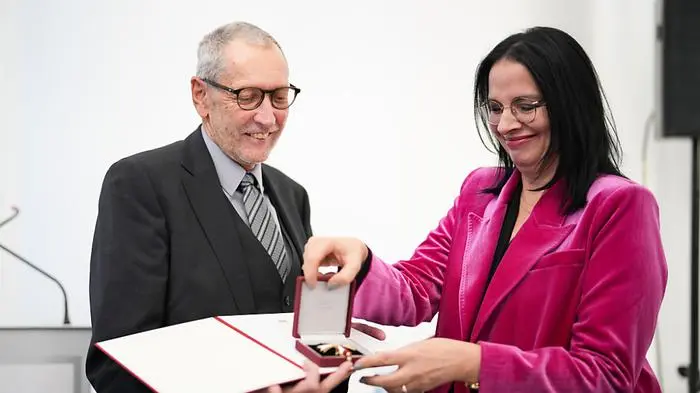 Konrad Paul Liessmann (70) hat am Donnerstag das Ehrenkreuz für Wissenschaft und Kunst 1. Klasse entgegengenommen. Kunst- und Kulturstaatssekretärin Andrea Mayer (Grüne) überreichte dem Philosophen, Kulturpublizisten, emeritierten Universitätsprofessor und Gründer des "Philosophicum Lech" die Auszeichnung im Oratorium der Österreichischen Nationalbibliothek in Wien. Die Laudatio hielt der Autor Michael Köhlmeier.