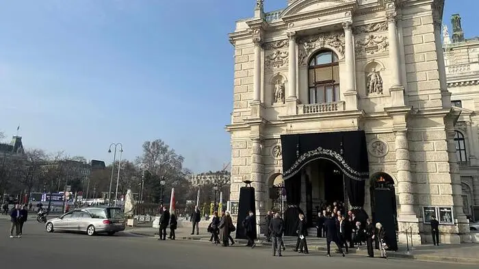 Das Burgtheater hat sich am Donnerstag von seinem am 30. Jänner im Alter von 89 Jahren verstorbenen früheren Direktor und Ehrenmitglied Achim Benning verabschiedet. Nach einer Trauerfeier, bei der Direktor Martin Kušej, Bundespräsident a.D. Heinz Fischer, der ehemalige Burgtheater-Dramaturg Reinhard Urbach, die Schauspielerin Erika Pluhar und Burgtheater-Doyen Michael Heltau das Wort ergriffen, wurde der Sarg in einem Trauerzug um das Burgtheater getragen.