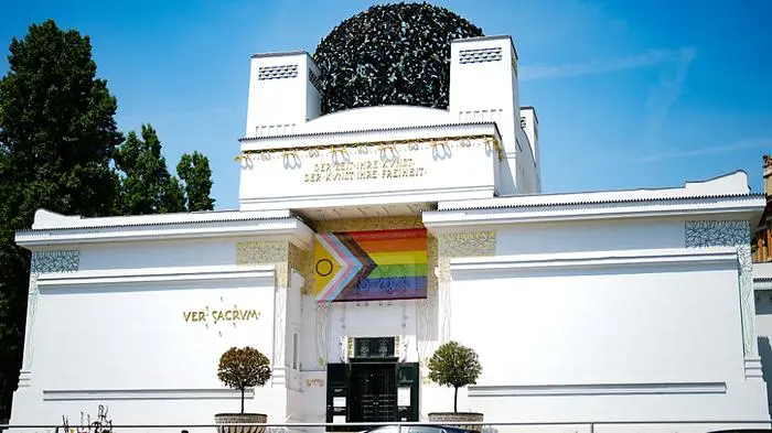 Schwarze Strümpfe verdecken goldene Kuppel der Secession