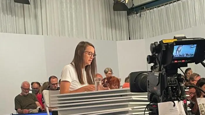 Als Letzte des Feldes las die in Wien lebende slowenische Musikerin und Autorin Tamara Štajner. "Luft nach unten" ist eine sehr persönliche Auseinandersetzung mit der Mutter und der Familiengeschichte, in der Štajner auch ein paar Liedzeilen aus Disneys "Aschenputtel"-Film und das Geräusch eines MRT eingebaut hatte - und beides mit perfekter Stimme vortrug. Wie persönlich dieser Text ist, erwies sich kurz vor dem Ende, als die Autorin bei einer Passage über ihre Mutter mehrmals ihre Tränen unterdrücken musste.