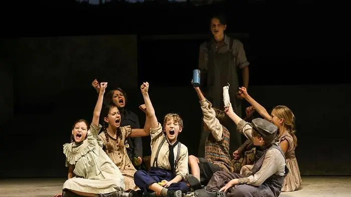 (S E R V I C E - "Der Krieg der Knöpfe" von Johanna Arrouas an der Volksoper, Währinger Straße 78, 1090 Wien. Bühne/Kostüm: Christof Hetzer, Video: Roman Hansi. Musikalische Leitung: Helmut Thomas Stippich. Mit Marcel Lebrac - Peter Lesiak, Jeanne - Julia Koci, Louis - Nicolaus Hagg, Joseph - Florian Carove und Darstellerinnen und Darstellern des Kinderchors der Volksoper. Weitere Aufführungen am 17. November, 9. und 22. Dezember, 12. Jänner, 16. und 23. Februar, 2. März und 24. April. www.volksoper.at/produktion/krieg-der-knopfe-2024.de.)