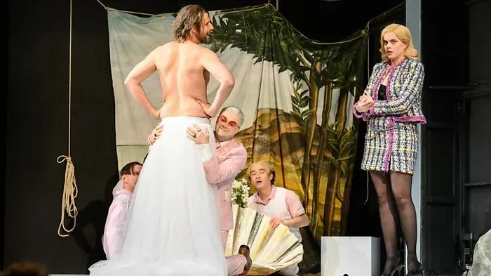 Liedtke bleibt nah an Salieris Vorlage: Frauen geben die Befehle, Männer ducken sich. Das ist klug gedacht und an vielen Stellen charmant erzählt. Doch die Umsetzung driftet oft ins Klamottige ab. Das nahezu durchgängig matschohafte Benehmen der Frauen gegenüber einer weichgespülten, in Rosa getauchten Männerschar ließ die Rollenbilder karikaturenhaft wirken. Immer wieder fühlte man sich an Greta Gerwigs "Barbie"-Film erinnert.