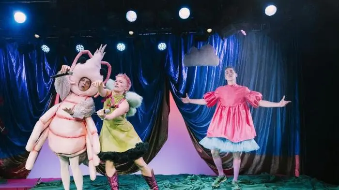Co-Autor Vincent Sauer spielt die Anna mit mehreren Portionen Pathos, Schmalz und Queerness und wird in seiner Bühnenpräsenz und Wandlungsfähigkeit nur noch von Isabella Knöll übertroffen, die man aus ihrer Zeit am Volkstheater Wien in allerbester Erinnerung hat. Sie spielt Ferdinand Raimund, den ebenso verzweifelt Dichtenden wie Liebenden, der beim Poetry Slam in der Rhyme Time stets jämmerlich versagt. Sie holt aber auch die Trophäe für das schrägste Kostüm des Abends: Während Sauer als Jugend im gelben Bärenpelz fette Punkte macht, räumt Knöll als singender und tanzender Shrimps, eine kleine Huldigung an die Postdramatik, noch stärker ab. Nur der ihm zuvor versprochene Cowboyhut fehlte. Den herzuzaubern, dafür sollte sich in den kommenden Vorstellungen noch eine Fee finden lassen. Ansonsten darf man aber sagen: Chapeau! Das Unmögliche ist geglückt.