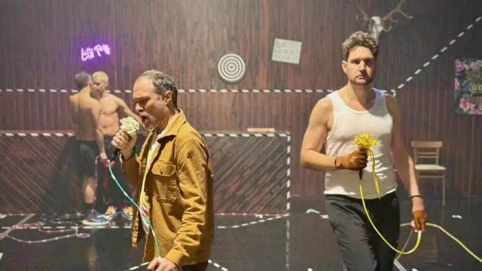 "I would like to know!", singen 12 Menschen auf der Bühne voller Inbrunst. Zuvor haben sie 105 Minuten lang wichtige Fragen gestellt, darunter jene, was wir hier eigentlich alle tun. Eine berechtigte Frage, die sie mit ihrer Show "Pizza oder eine Tür in der Dunkelheit tanzt nicht" bereits beantwortet haben. Denn zur Eröffnung eines neuen Theaters im steirischen Höf-Präbach waren viele angereist, die das Nature Theater of Oklahoma sehen wollten. Sie wurden nicht enttäuscht.
