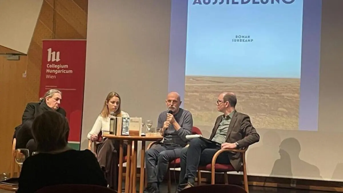 András Viskys Roman "Die Aussiedlung" hat den 1957 geborenen Dramatiker und Regisseur in eine andere Umlaufbahn geschleudert. In Ungarn ist das 2022 veröffentlichte Buch schon in der neunten Auflage, die kürzlich erschienene deutsche Übersetzung von Timea Tankó rangiert auf vielen Bestenlisten und wurde soeben auch für den Leipziger Buchpreis in der Sparte Übersetzung nominiert. "Derzeit renne ich meinem Buch keuchend hinterher", sagte Visky am Mittwochabend in Wien.