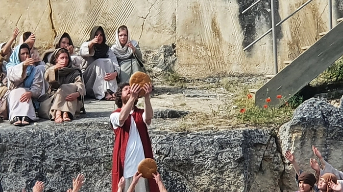 Mit einem Jahr Verspätung haben am Donnerstag die Passionsspiele St. Margarethen mit ihrer neuen Inszenierung Premiere gefeiert. Nach der coronabedingten Absage im Vorjahr brachten die rund 500 Darsteller und Helfer die Leidensgeschichte Jesu erstmals aus Sicht der Emmaus-Jünger auf die Bühne im Steinbruch. Ein Wechsel der Perspektive, der sich auszahlt: "Emmaus - Geschichte eines L(i)ebenden" ist durchaus kurzweilig und emotional, ohne in den Pathos abzudriften.