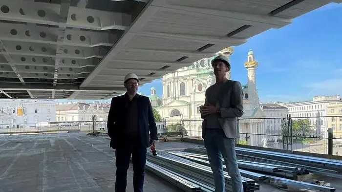 Die Aussicht auf den Karlsplatz mit Karlskirche, Künstlerhaus und Musikverein ist kolossal. Das neue "Fugengeschoß" zwischen dem alten Haerdtl-Bau und dem aufgesetzten "Schwebegeschoß" für Sonderausstellungen wird eine der Attraktionen des Wien Museum neu. Doch nicht nur die Aussichtsterrasse wird frei zugänglich. "Das ganze Haus ist frei", sagte Museumschef Matti Bunzl heute. "Die Sonderausstellungen ganz oben sind der einzige Bereich, für den man ein Ticket brauchen wird."