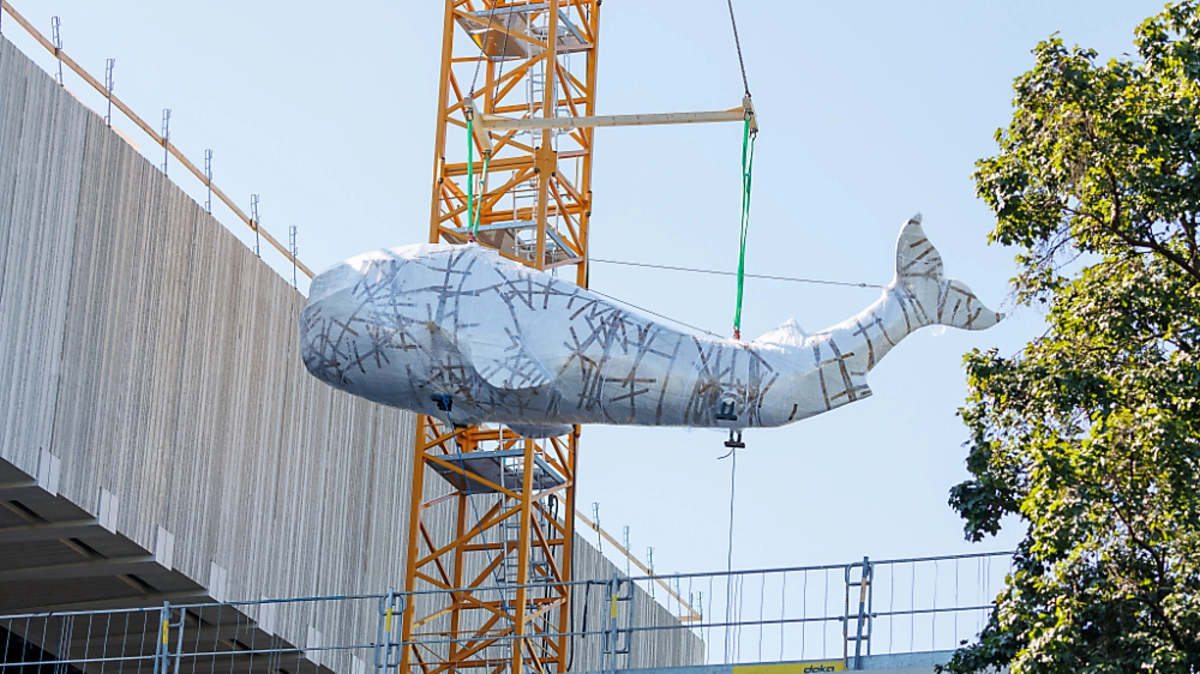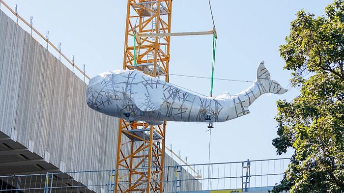 Zehn Meter langer Wal mit Kran ins Wien Museum gehoben