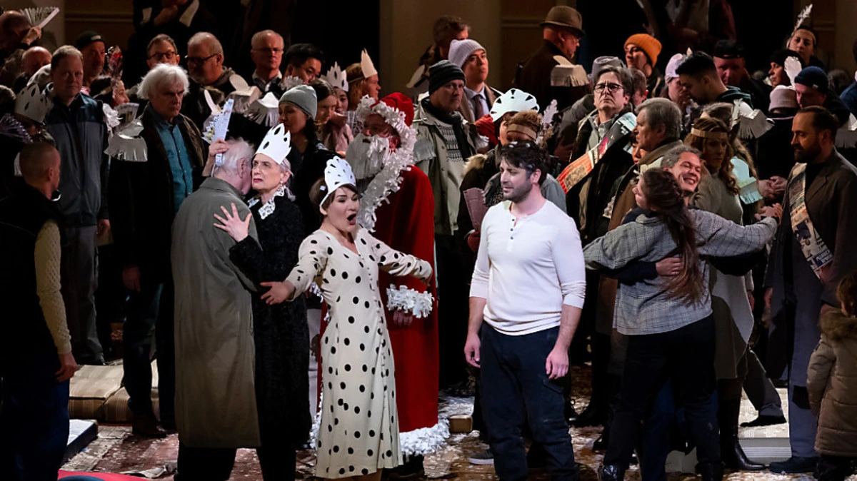 "Krieg und Frieden" an der Bayerischen Staatsoper in München: In Dmitri Tcherniakovs Regie hat am Sonntag ein schwieriges Werk Premiere gefeiert. Die Oper von Sergej Prokofjew beruht auf Leo Tolstois Roman und spielt im Jahr 1812, als Napoleon in Russland einmarschiert. Es ist ein Stück mit stalinistischer Propaganda und Hymnen, die das russische Militär und "die heilige Mutter Russland" feiern. Zum Schlussapplaus setzen die Sänger beider Hauptpartien ein klares Zeichen.