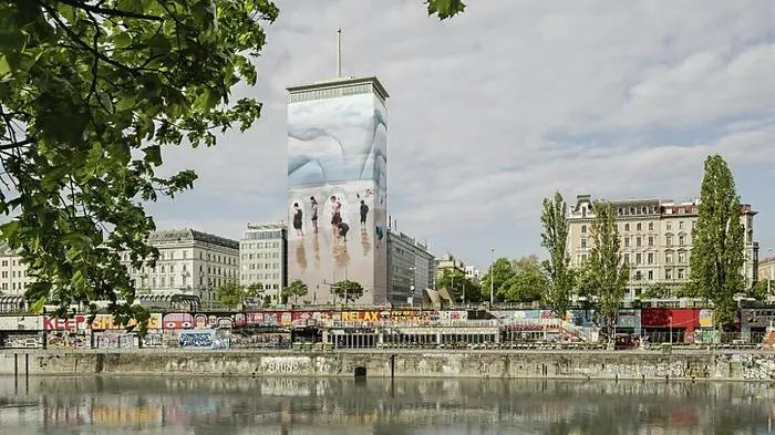 Am Wiener Donaukanal sind nun die "Wandernden Eisberge" vor Anker gegangen. Konkret das gleichnamige Werk der slowenischen Künstlerin Vanja Bućan, die damit die heurige Verhüllung des Ringturms als "Zeichen gegen den Klimawandel" bestreitet. Am Dienstagabend wurde die 4.000 Quadratmeter große Installation in Anwesenheit von Sloweniens Kulturministerin Asta VreÄko und Kulturstaatssekretärin Andrea Mayer (Grüne) offiziell ihrer Bestimmung übergeben.