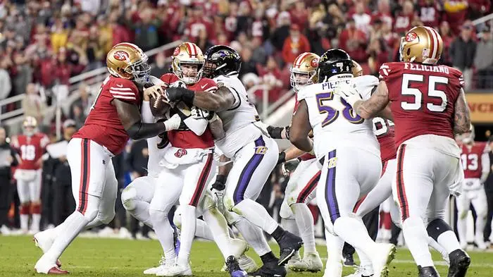 San Franciscos Quarterback Brock Purdy lieferte seine bisher schwächste Saisonpartie ab und leistete sich gleich vier Interceptions. Bei einigen weiteren Pässen fehlte dazu nicht viel. Sein Gegenpart Lamar Jackson warf dagegen im dritten Viertel binnen nur 18 Sekunden zwei Pässe, die zu Touchdowns führten. Beim Zwischenstand von 30:12 für Baltimore war die Partie frühzeitig entschieden.