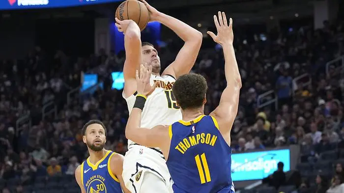 Basketball-Star Nikola Jokic hat Titelverteidiger Denver Nuggets in der NBA spektakulär zu einem Sieg bei den Golden State Warriors geführt. Der serbische Center verwandelte beim 130:127-Erfolg am Donnerstagabend (Ortszeit) in letzter Sekunde den entscheidenden Wurf von kurz hinter der Mittellinie. Mit 34 Punkten, zehn Assists und neun Rebounds zeigte der zweifache NBA-Spieler des Jahres eine Glanzleistung. Jokic traf 13 seiner 16 Würfe aus dem Feld.