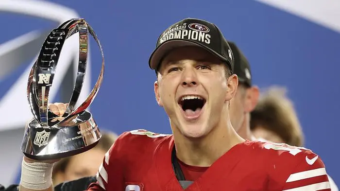 Sicher bei der Super-Bowl-Premiere in der Glücksspielmetropole dabei sind dafür die 49ers um Quarterback Brock Purdy, die auf ihren ersten Triumph seit 1994 hoffen. Als San Francisco vor vier Jahren in Miami gegen die Chiefs verlor, war er noch zwei Jahre von seinem NFL-Debüt entfernt. Nun führte er sein Team zu einem Comeback, das es in der NFL-Historie in einem Championship-Spiel noch nicht gegeben hatte. Aus einem 7:24 zur Pause machten die 49ers binnen weniger Minuten im dritten Viertel ein 24:24 und gaben die Kontrolle danach nicht mehr aus der Hand.