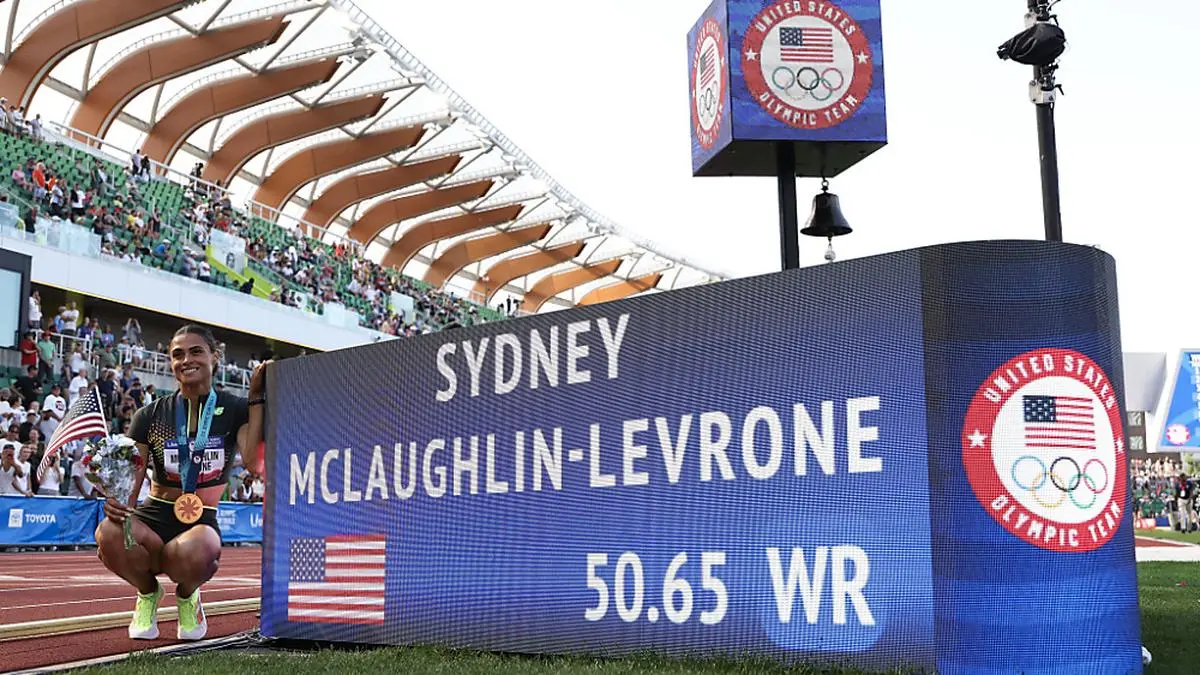 Sydney McLaughlin-Levrone hat ihren eigenen Weltrekord über 400 Meter Hürden verbessert. Bei der Qualifikation für die Olympischen Spiele in Paris kam die 24-jährige Amerikanerin in Eugene im US-Staat Oregon am Sonntagabend (Ortszeit) nach 50,65 Sekunden ins Ziel. Der alte Rekord lag bei 50,68 Sekunden, aufgestellt vor zwei Jahren bei ihrem WM-Sieg im selben Stadion. McLaughlin-Levrone hat den Weltrekord bereits fünf Mal verbessert.