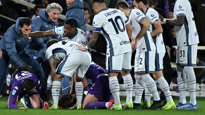 Der italienische Fußballer Edoardo Bove ist am Sonntag im Serie-A-Spiel zwischen AC Fiorentina und Inter Mailand auf dem Spielfeld zusammengebrochen und in dramatischen Momenten mit einem Krankenwagen aus dem Stadion auf die Intensivstation eines Krankenhauses gebracht worden. Das Spiel wurde abgebrochen. Viele Spieler und Betreuer weinten, wie auf TV-Aufnahmen zu sehen war. Der österreichische Inter-Stürmer Marko Arnautovic erlebte die dramatischen Szenen auf der Ersatzbank.