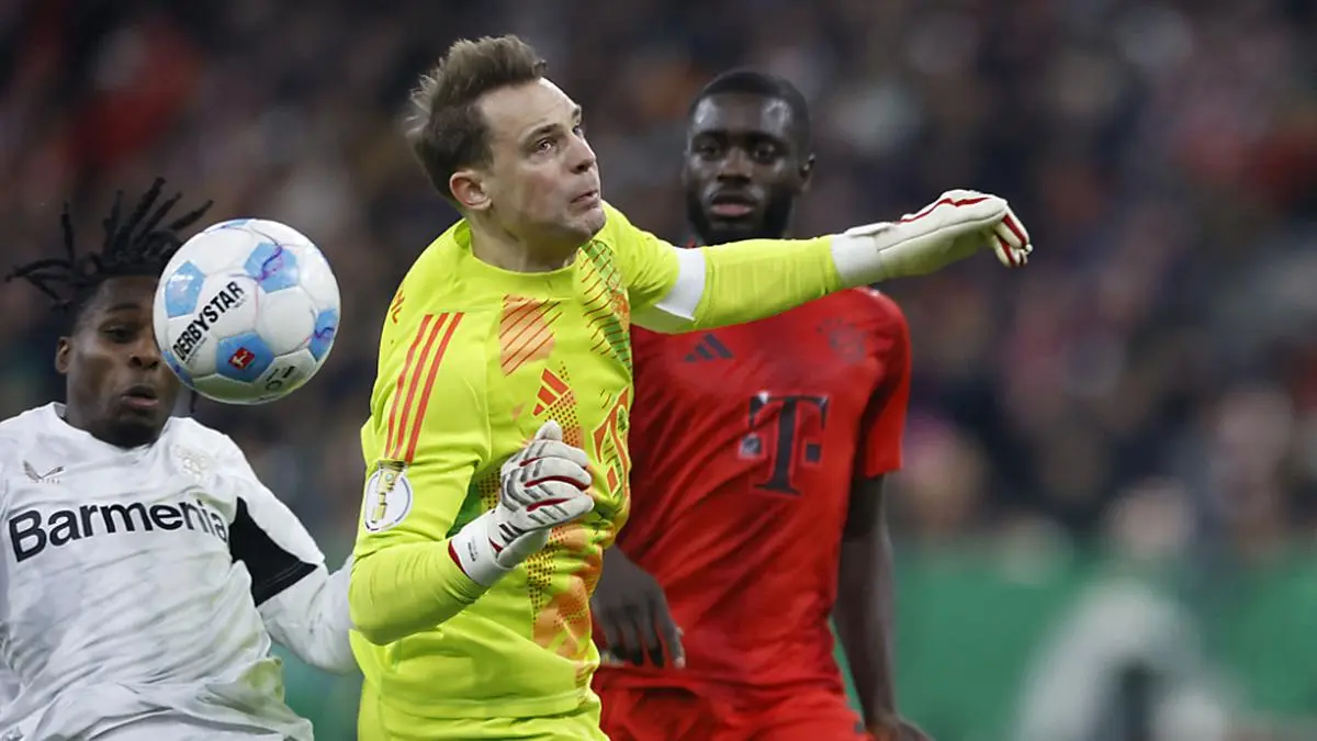 In München wurde die 17. Minute zum Knackpunkt der Partie. Neuer kam außerhalb des Strafraums gegen Jeremie Frimpong zu spät und erlebte den ersten Platzverweis seiner Profi-Karriere. Daniel Peretz ersetzte ihn und bekam gegen Leverkusen lange wenig zu tun. Tella aber stand bei einer Grimaldo-Maßflanke zwischen die Innenverteidiger goldrichtig. Kurz darauf wurde der als Rechtsverteidiger aufgebotene Konrad Laimer ausgewechselt. Gegen die dichtgestaffelte Defensivreihe der Gäste fiel den Bayern dann ohne den verletzten Harry Kane zu wenig ein. Zum fünften Mal nacheinander scheiterte der Rekordsieger damit vorzeitig im Cupbewerb.