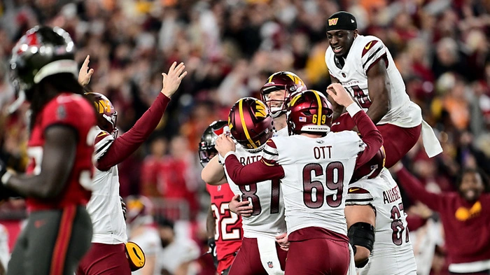 Die Washington Commanders haben auf dramatische Art und Weise die zweite Runde der NFL-Play-offs erreicht. Beim 23:20 gegen die Tampa Bay Buccaneers entschied ein Field Goal bei auslaufender Uhr die Partie zugunsten der Gäste. Der Football klatschte dabei an die Stange und erst dann ins Ziel. Die Commanders sorgten damit für den ersten Sieg eines schlechter gesetzten Teams in den Play-offs dieser Saison und bekommen es kommende Woche mit den Detroit Lions zu tun.
