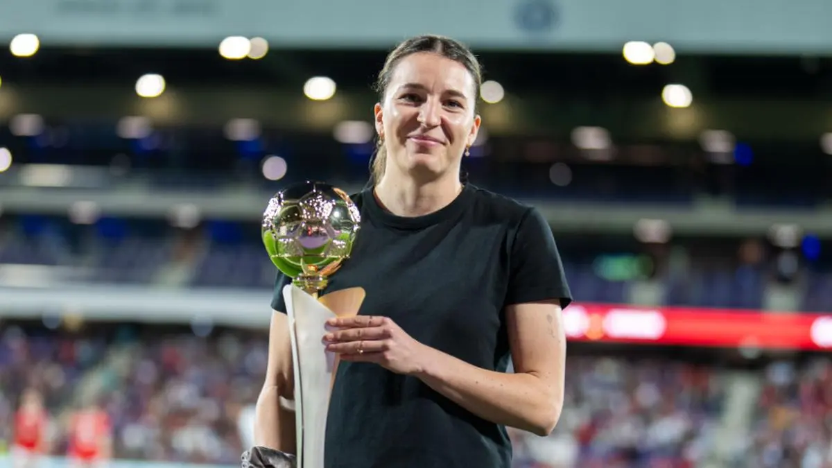Dunst nimmt Pokal als Fußballerin des Jahres 2024 entgegen