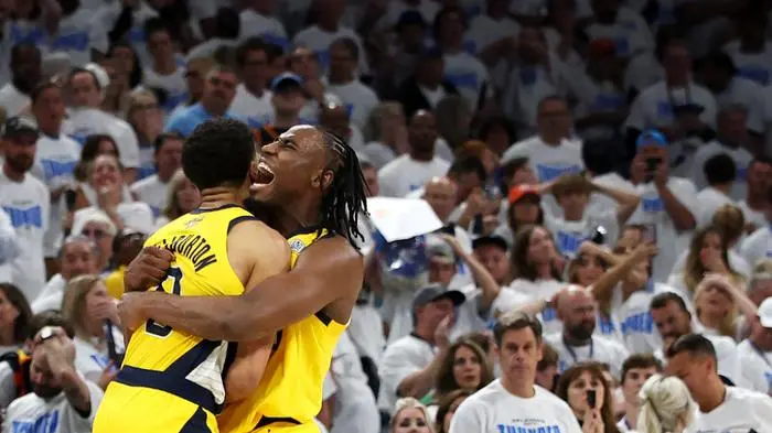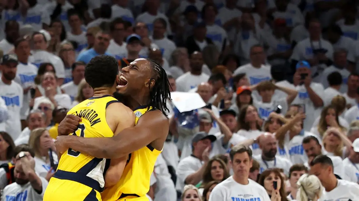 Die Indiana Pacers haben zum Auftakt der NBA-Finals einen Comeback-Sieg bei Oklahoma City Thunder bejubelt. Die als Außenseiter in Spiel eins im "best of seven" gestarteten Pacers lagen am Donnerstag (Ortszeit) praktisch über das gesamte Spiel in Rückstand, ehe Tyrese Haliburton 0,3 Sekunden vor der Schlusssirene den entscheidenden Wurf zum hauchdünnen 111:110-Erfolg verwertete. Die Führung von OKC hatte zu Beginn des vierten Viertels bereits bis zu 15 Zähler betragen.