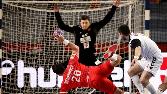 Der Finaleinzug gelang den Füchsen trotz eines frühen Schocks: Der dänische Superstar Mathias Gidsel flog nach nicht einmal neun Minuten mit Rot vom Feld. Der Welthandballer war bei einem Abwehrversuch ausgerutscht und hatte dabei einen Gegenspieler beim Wurf mit einer Grätsche wie im Fußball abgeräumt.