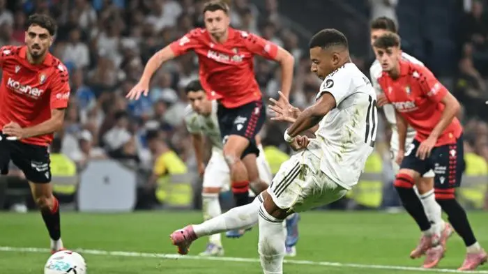 Real Madrid hat einen erfolgreichen Start in der spanischen Fußball-Meisterschaft hingelegt. Der LaLiga-Vizemeister setzte sich am Dienstag zum Abschluss der Auftaktrunde im Estadio Santiago Bernabeu gegen Osasuna 1:0 durch und erfüllte die erste Pflichtaufgabe genauso wie Titelverteidiger FC Barcelona, der bereits am Samstag bei Mallorca 3:0 gewonnen hatte. ÖFB-Star David Alaba bekam von Trainer Xabi Alonso keine Einsatzminuten. Den einzigen Treffer erzielte Kylian Mbappe.