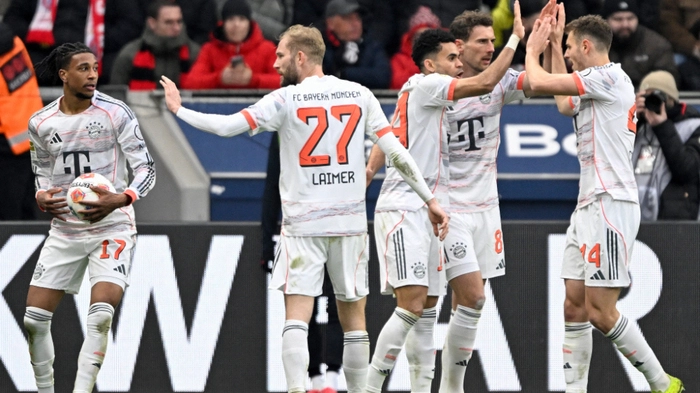 Die Bayern agierten in Leverkusen mit Konrad Laimer als Linksverteidiger in der Startelf und verletzungsbedingt ohne Jamal Musiala und mit Dreier-Keeper Sven Ulreich. Dieser musste schon nach sechs Minuten hinter sich greifen, ein abgefälschter Schuss von Aleix Garcia schlug unhaltbar ein. Ein Tor von Jonathan Tah wurde wegen Handspiels des Ex-Leverkuseners aberkannt (26.). Harry Kane, der zunächst auf der Bank Platz nahm, sah dann, wie sein Stürmer-Stellvertreter Nicolas Jackson mit Rot vom Platz flog (42.). Der Senegalese traf Bayers Martin Terrier mit gestrecktem Bein am Knöchel, der Franzose musste zur Pause ausgetauscht werden.