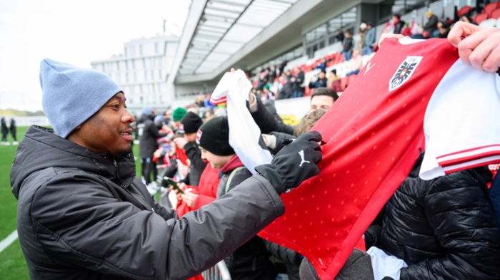 Österreichs Fußball-Männer-Nationalteam hat am Samstag erstmals überhaupt im neuen ÖFB-Campus trainiert - und das vor rund 1.000 vorwiegend jungen Fans. Am Tag nach dem 5:1-Testspielsieg über Ghana waren alle Tickets für das Kleinstadion in Wien-Aspern vergeben. Bereits vor Beginn der Einheit kam der komplette Kader auf den Platz und schrieb Autogramme. Eine halbe Stunde später begann das Training, wobei nur knapp die Hälfte des aktuellen Aufgebots auf dem Rasen zu sehen war.